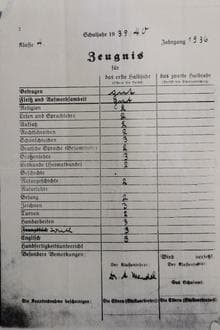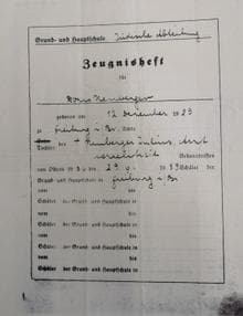 Doris Neuberger wurde Ostern 1936 in der Grund- und Hauptschule Freiburg eingeschult. Das war wohl die Lessingschule, an der im Oktober 1936 die "jüdische Schulabteilung" eingerichtet wurde, in die alle jüdischen Schüler und Schülerinnen wechseln mussten. Aus der vierten Klasse ist ihr Zeugnis erhalten. Sie hatte Unterricht in Religion, Lesen und Sprachlehre, Aufsatz, Rechtschreiben, Schönschreiben, Größenlehre, Erdkunde, Naturgeschichte, Gesang, Zeichnen, Turnen, Handarbeiten, Englisch und Iwrit (Neuhebräisch) anstelle von Französisch.