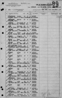 Flug in die Freiheit: Passagierliste mit den Namen von Franz, Margarethe, Susi und Lisbet Günzburger vom 17. Juni 1942 (Quelle: Ancestry).