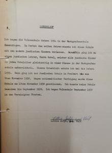 Eidesstattliche Versicherung von Lieselotte Jaffe vom 20. Oktober 1957. Die jüdische Schulabteilung an der Lessingschule in Freiburg wurde erst am 21. Oktober 1936 eröffnet (Quelle: StaF F 196/1 Nr. 11133).